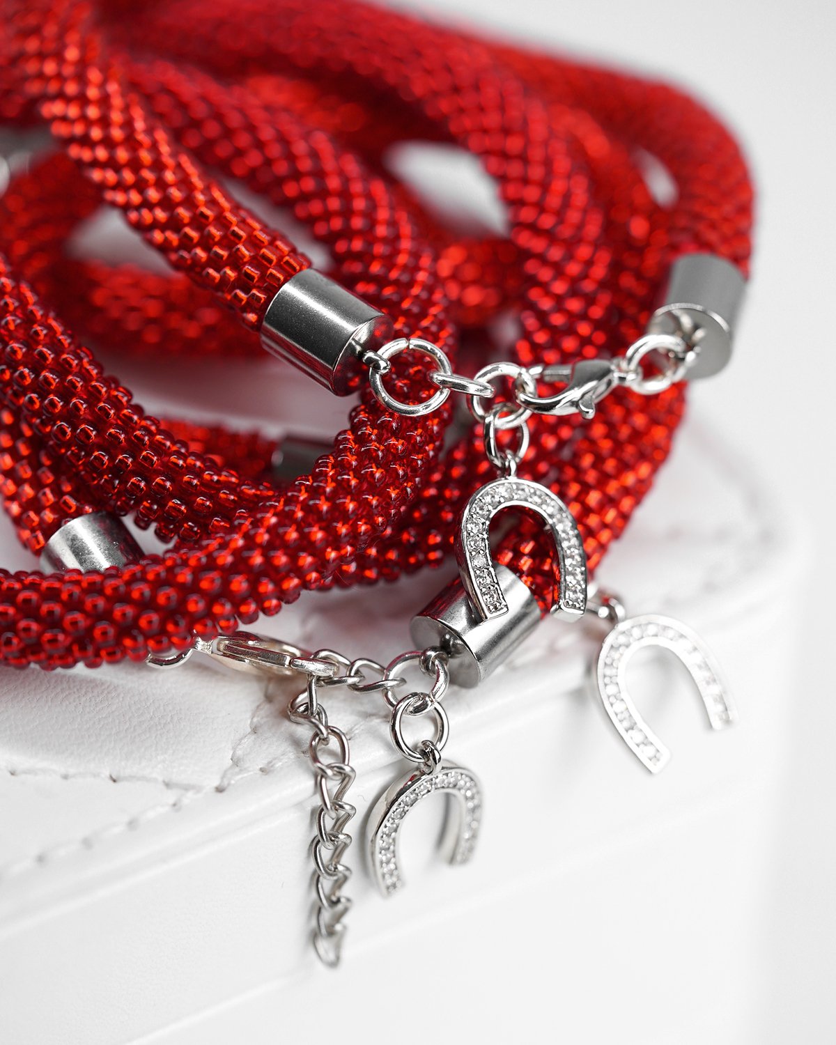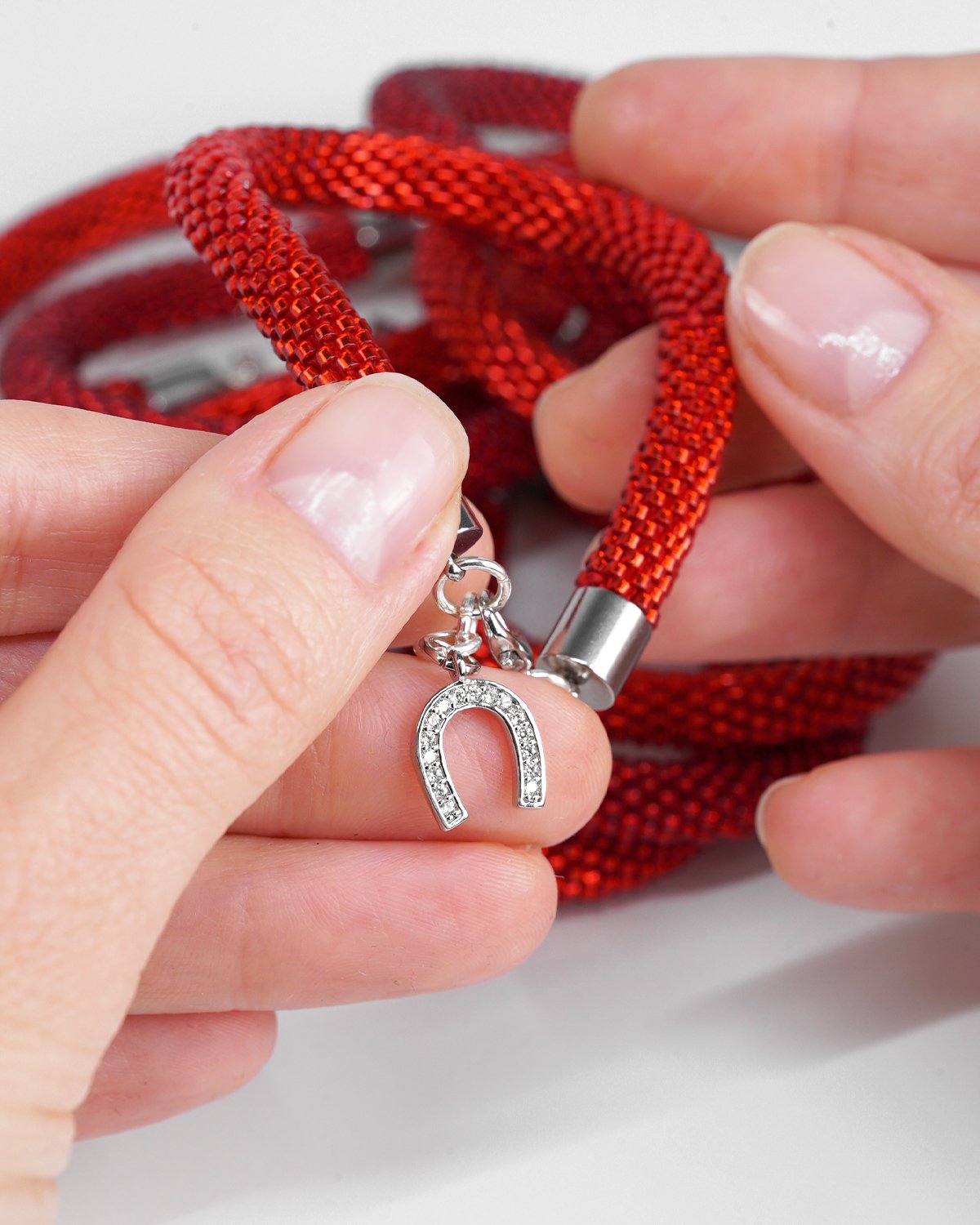 The rhinestone horseshoe charm brings a subtle sparkle and a touch of symbolism — a classic sign of luck, protection, and forward motion.