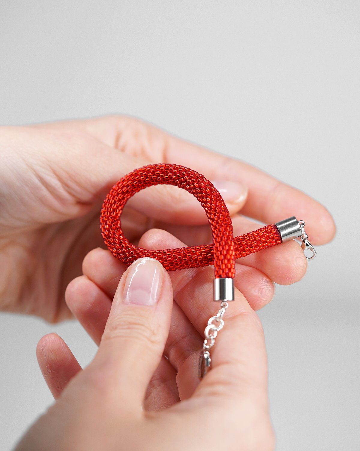 This bracelet was created to feel both beautiful and meaningful. Made with premium Japanese Miyuki seed beads and crocheted for a smooth, flexible finish, it wraps comfortably around the wrist while holding a vibrant, striking red hue.