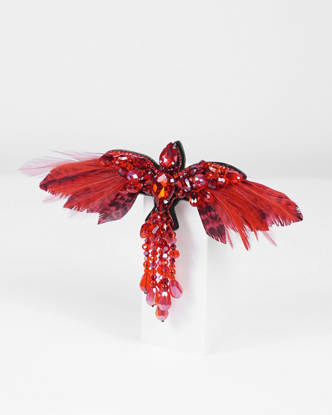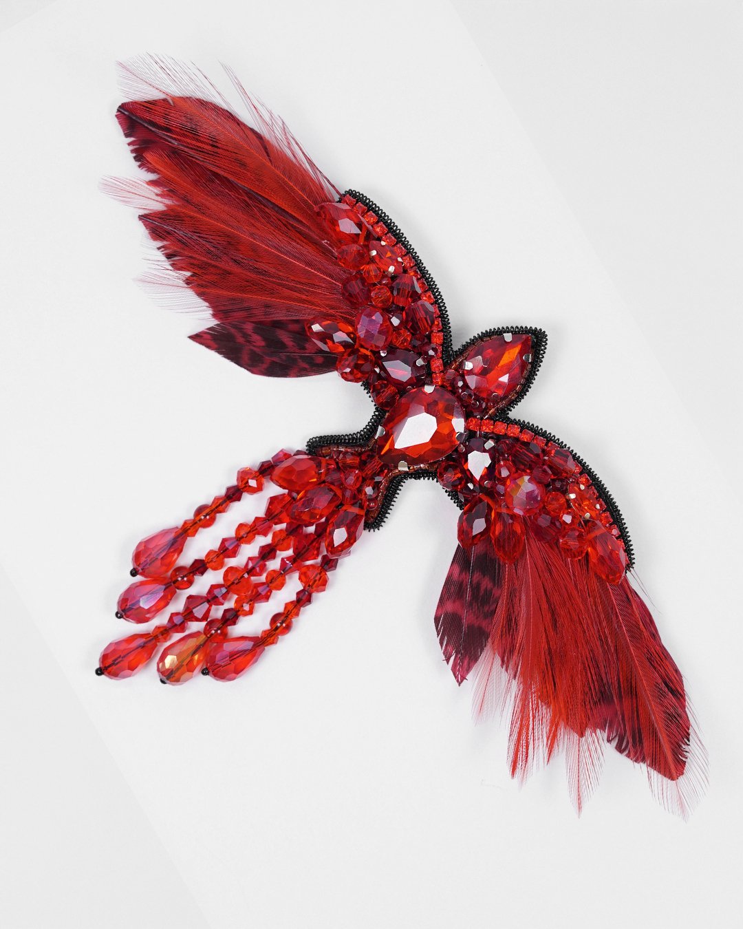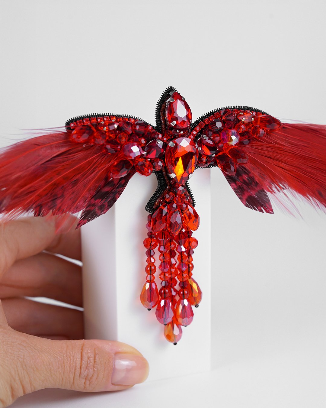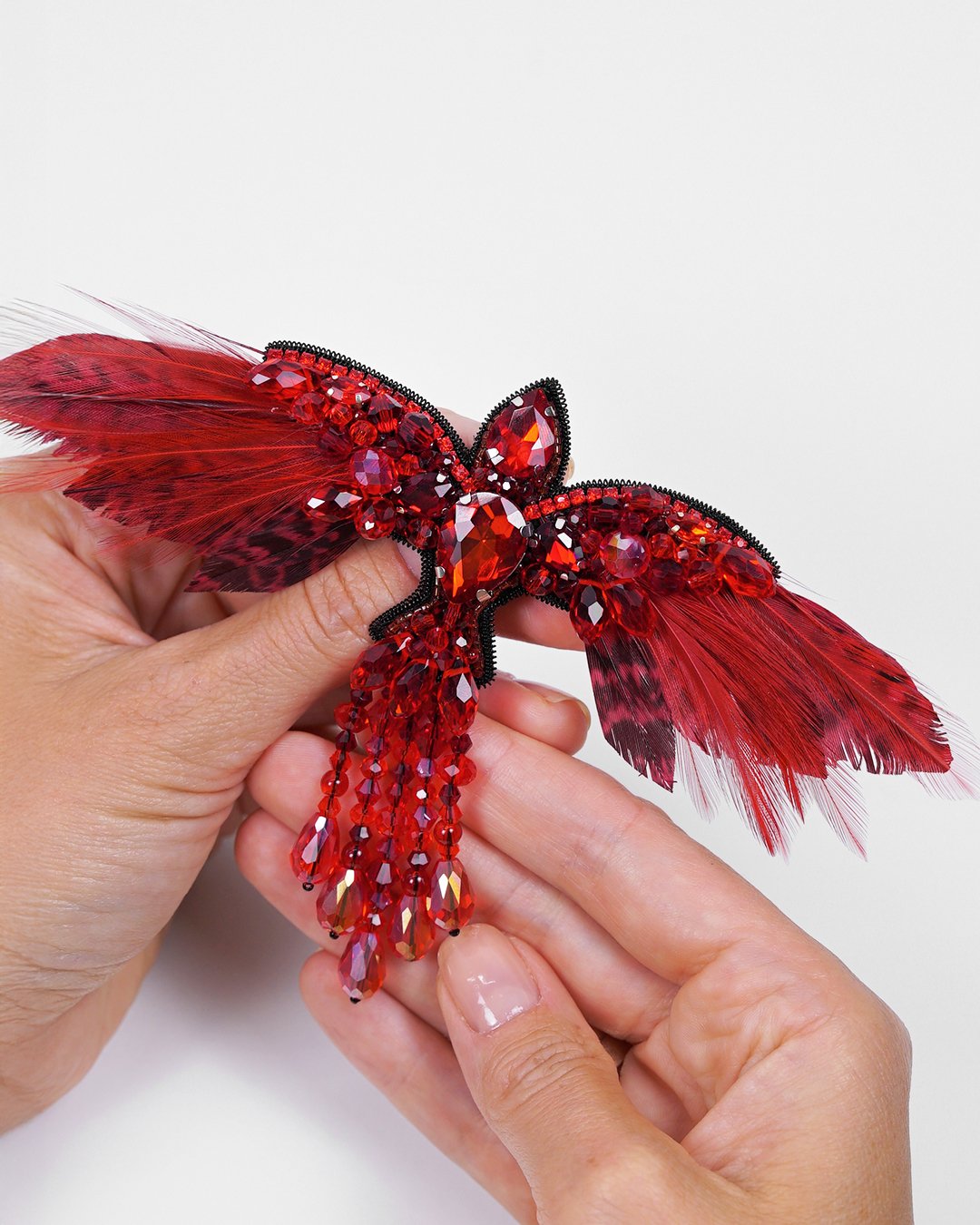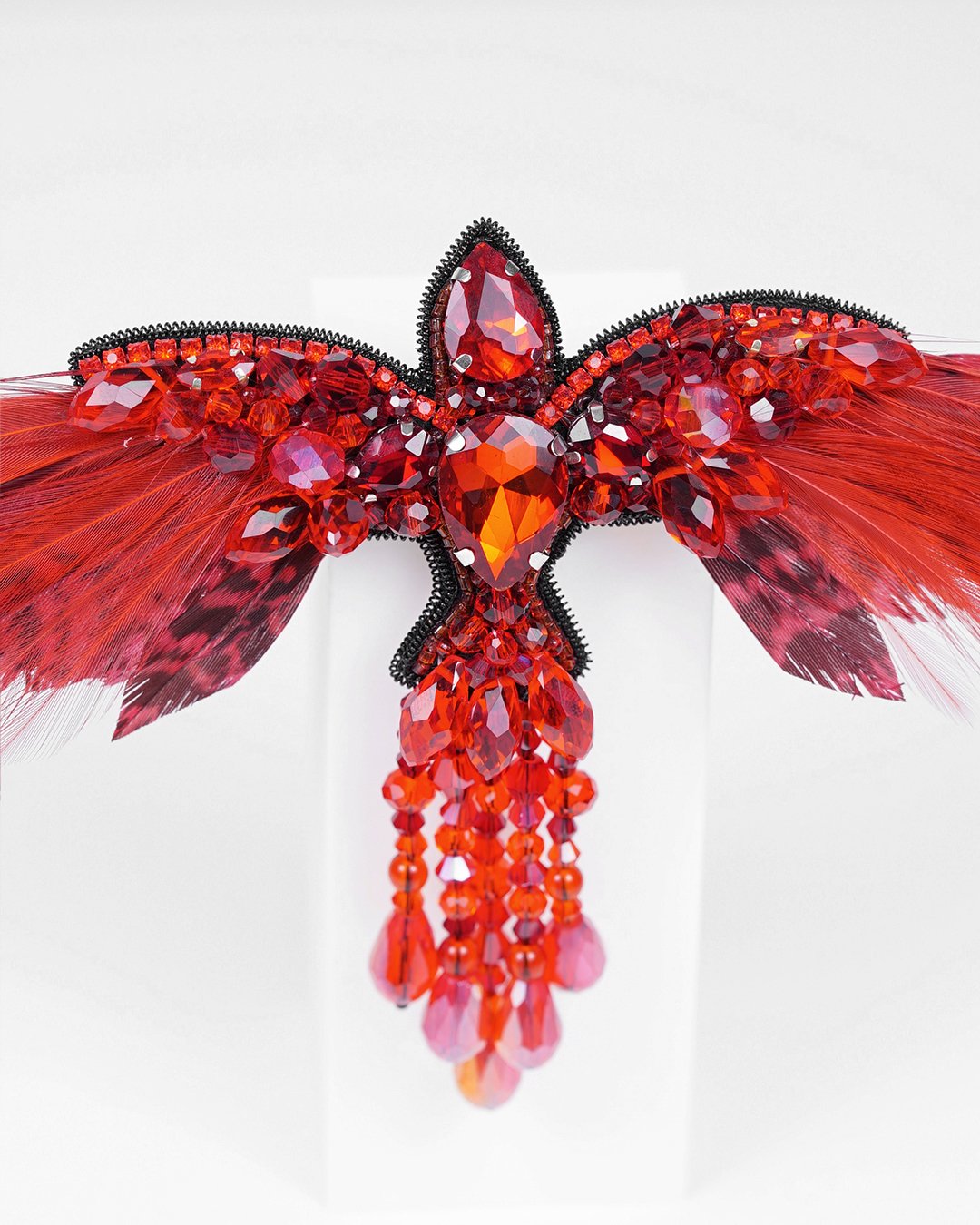 This stunning handmade accessory is crafted with the finest materials, including premium glass crystal beads, Swarovski crystal beads, and Czech and Miyuki seed beads, creating a rich texture and sparkle that embodies the vibrant energy of the legendary phoenix.