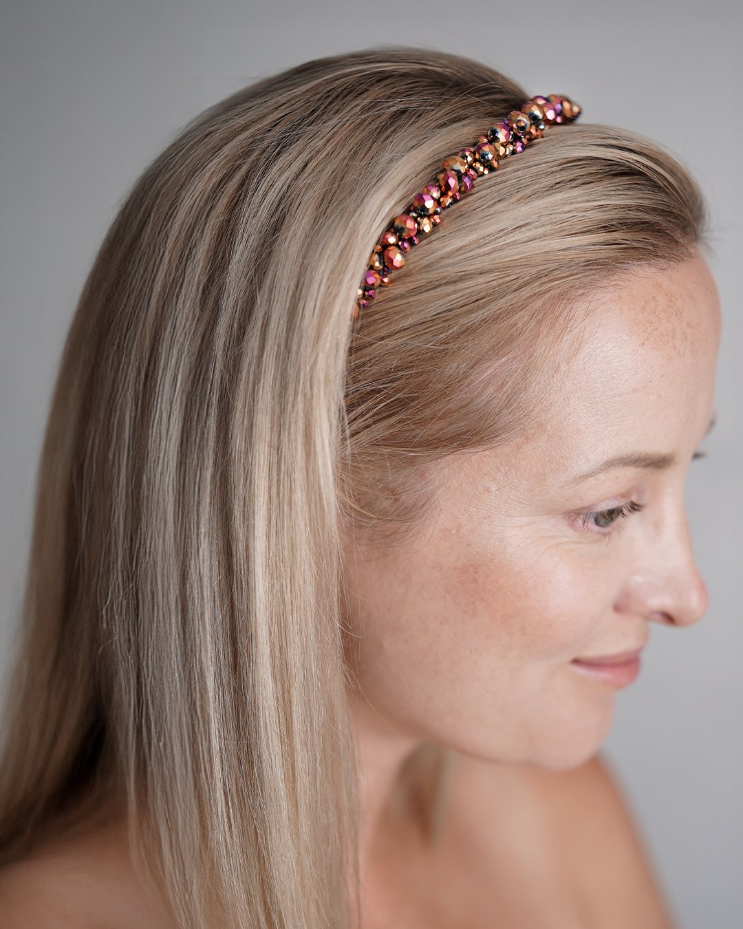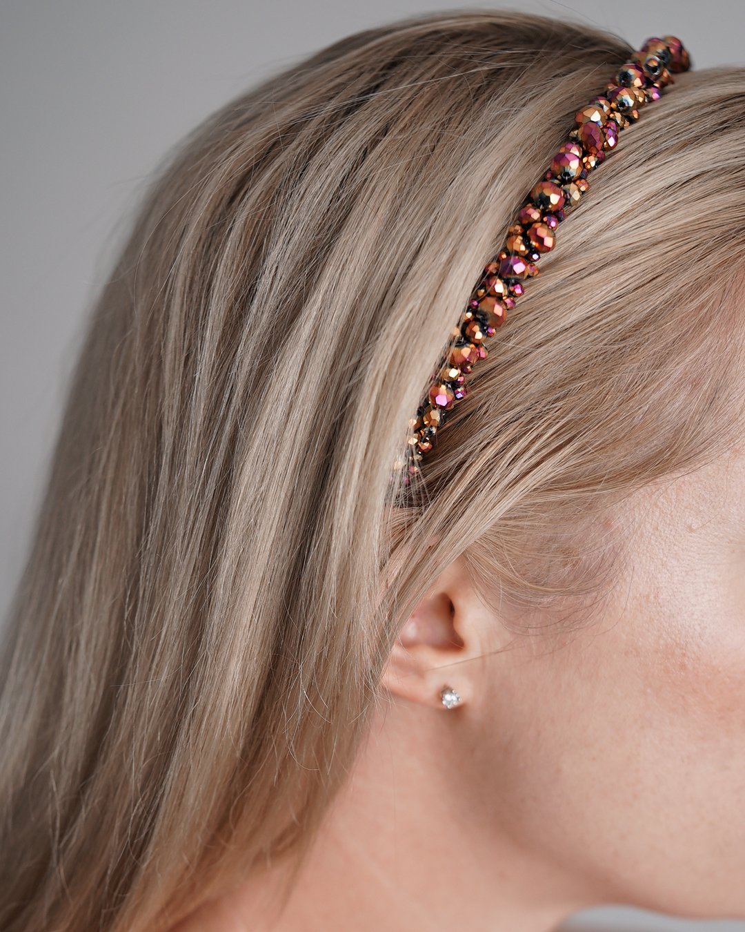 Whether you wear it with waves, an updo, or sleek hair, the Rosé Spark Headband adds a signature glow that’s all your own.