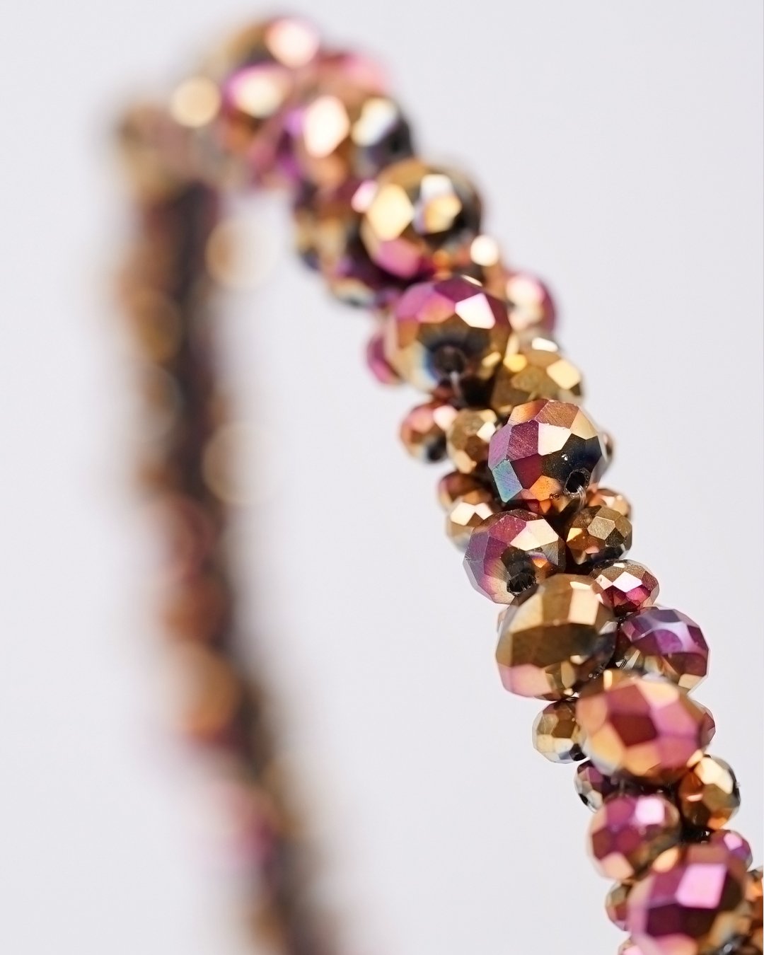 Handmade beaded headband with faceted glass crystal beads