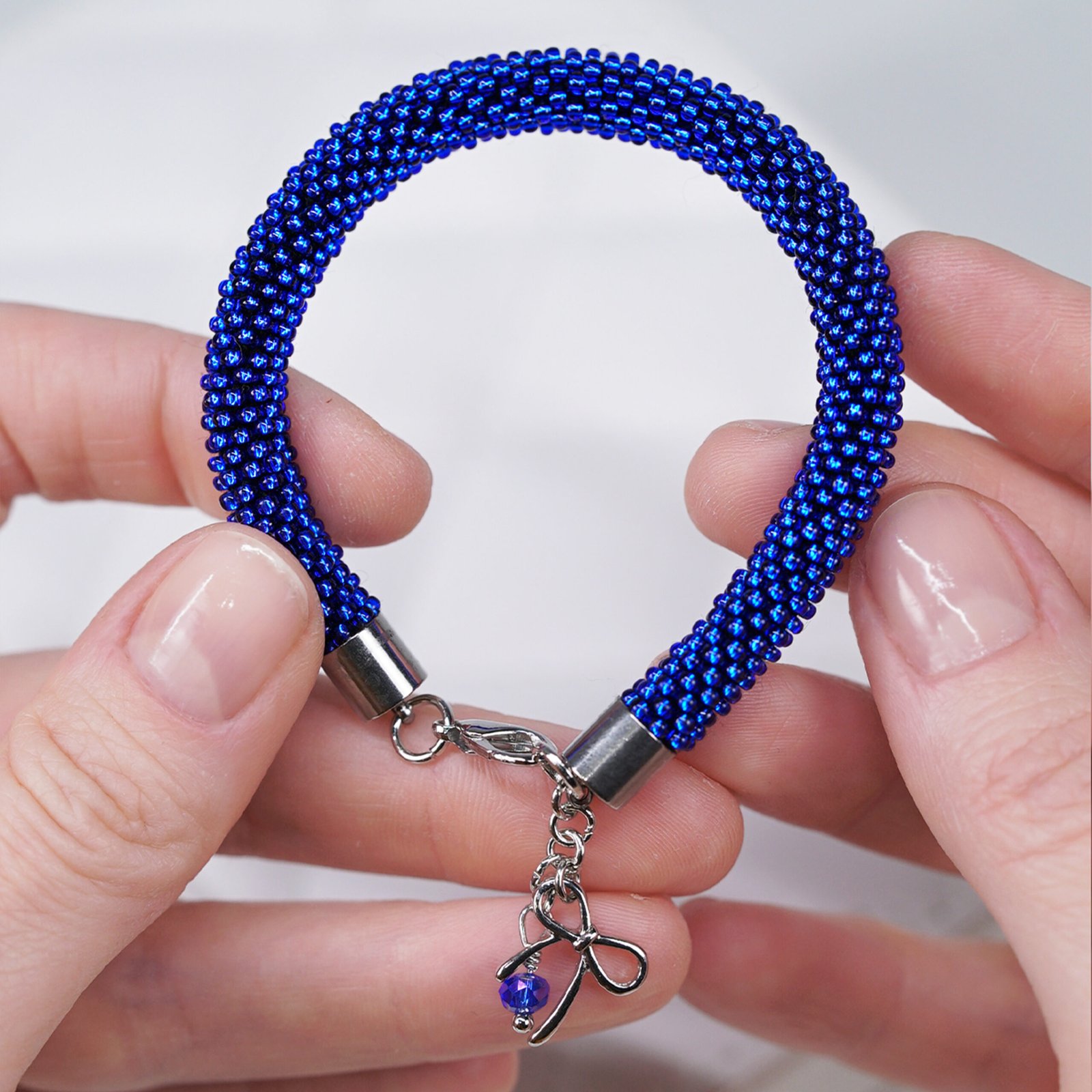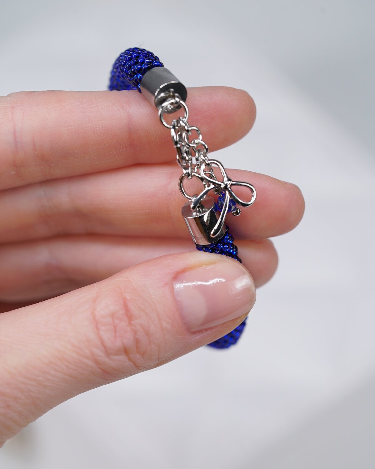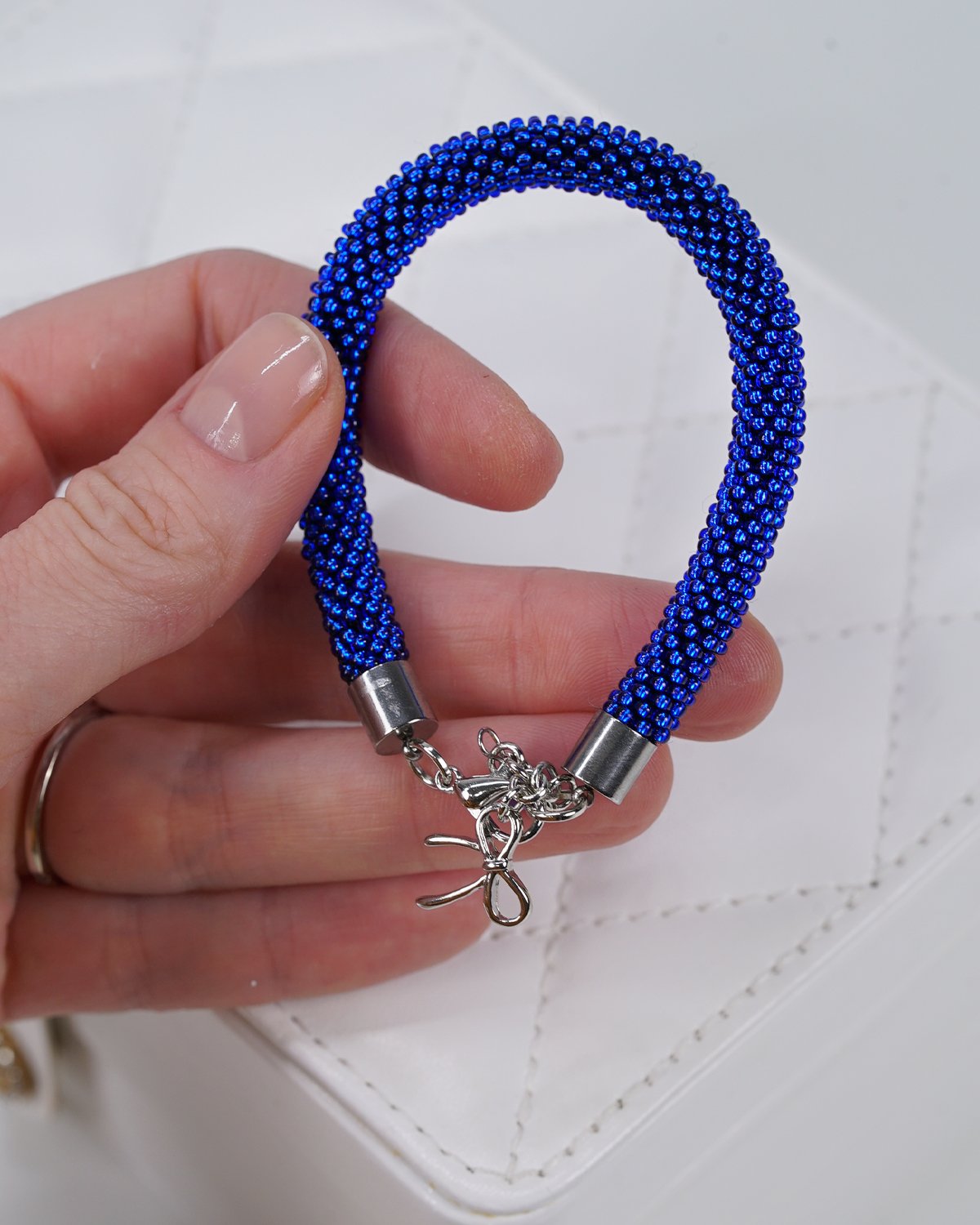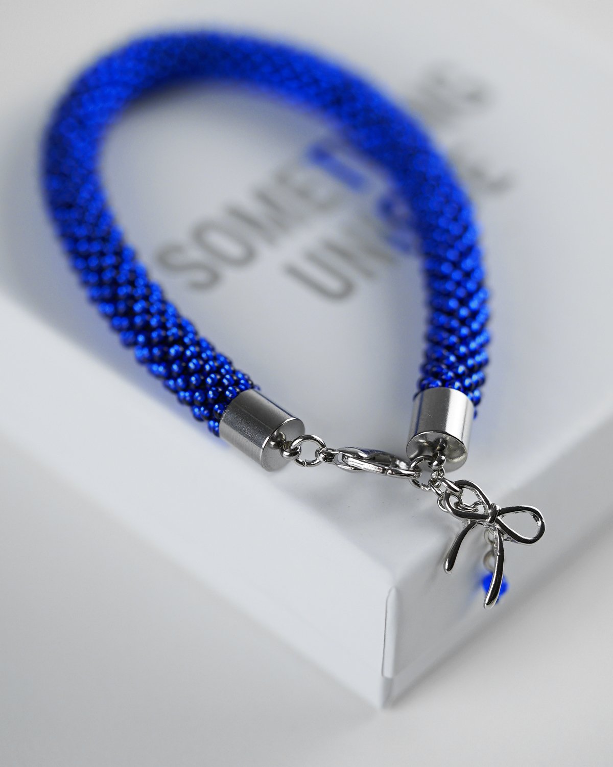 The bracelet is created using a meticulous crochet technique, resulting in a smooth, flexible, and durable rope design. A delicate bow charm adds a feminine and playful touch, making this piece both classic and unique.