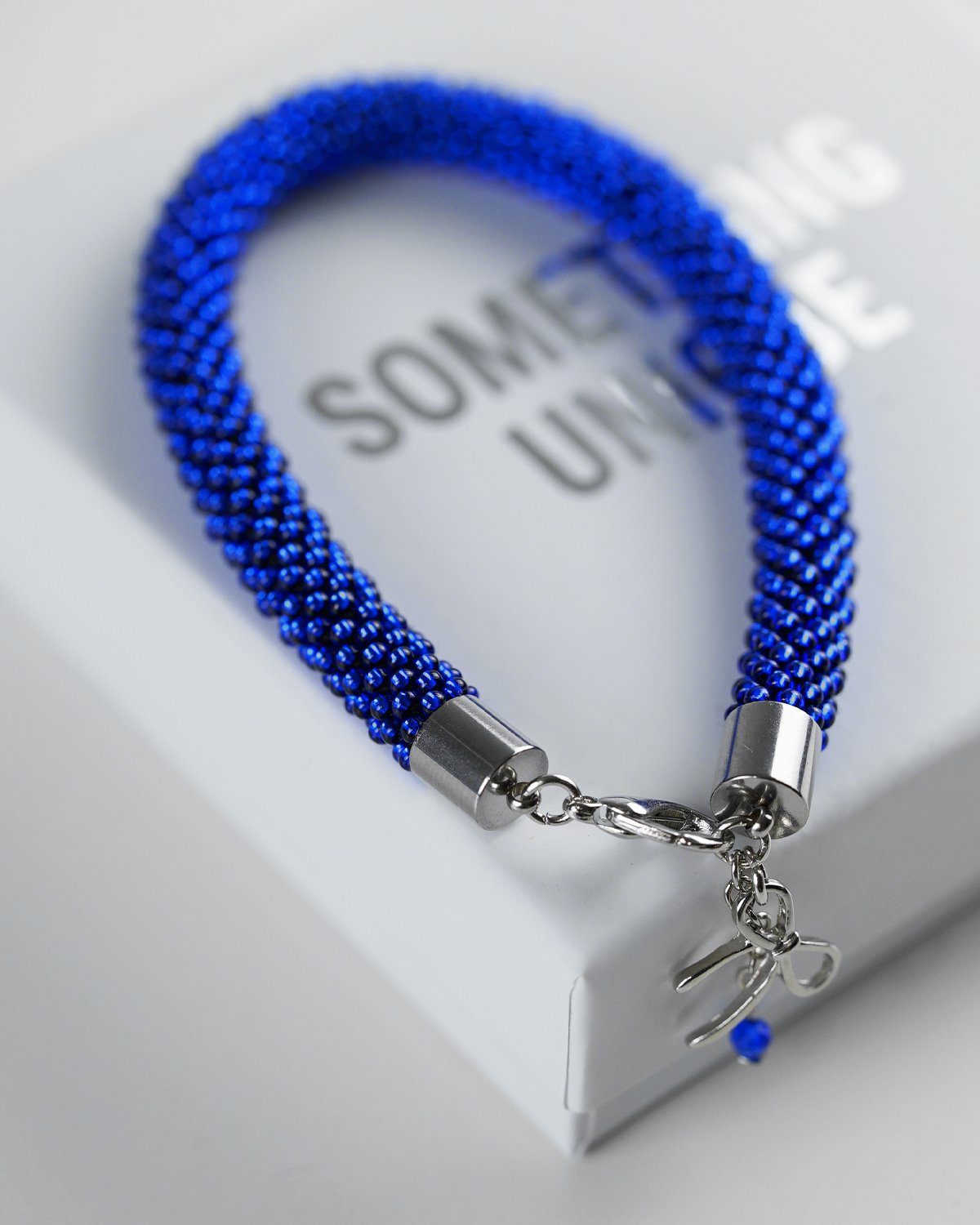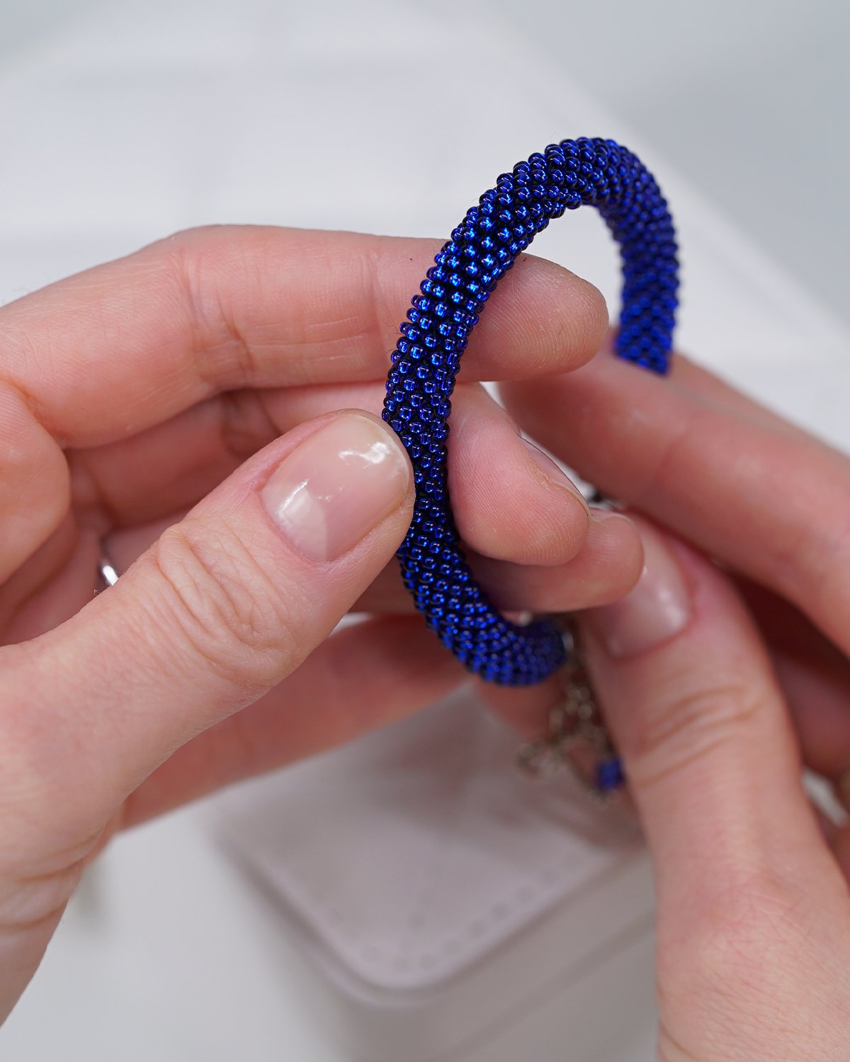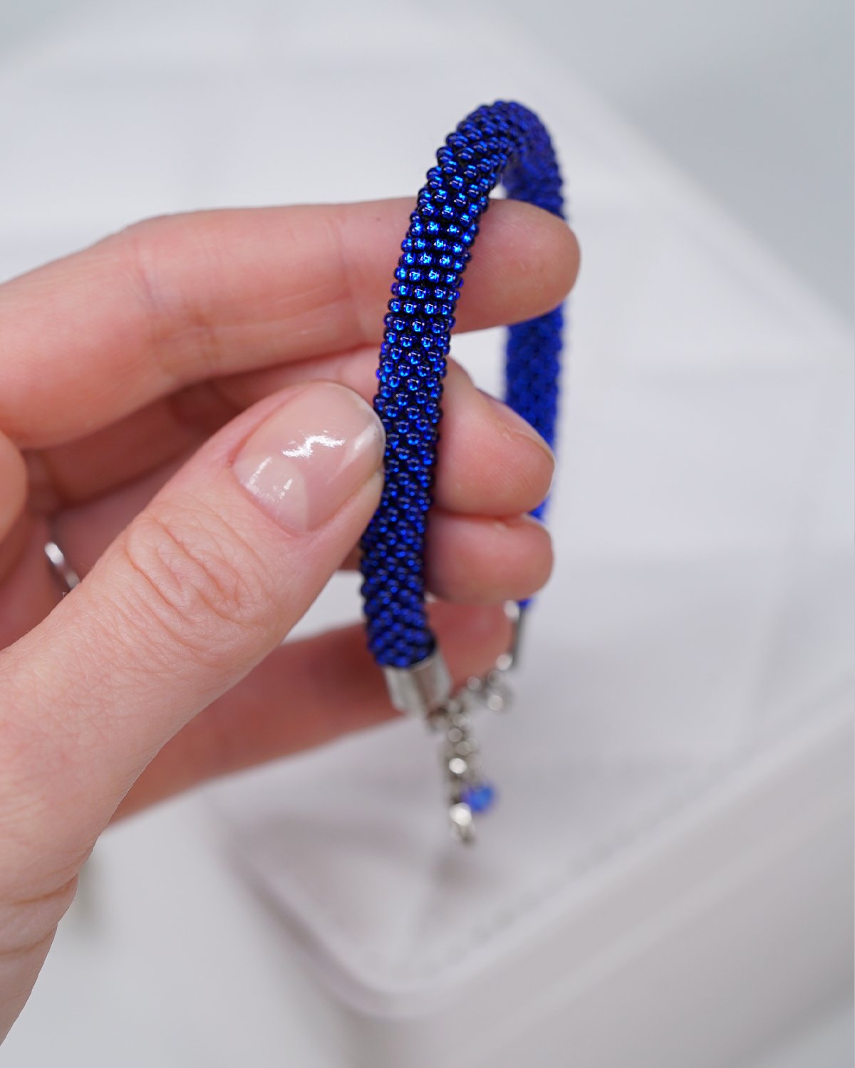 Elegant, refined, and full of charm — this sapphire blue bracelet is a timeless piece designed to elevate any look. Handcrafted using premium Japanese Toho seed beads, it features a rich, deep blue tone that beautifully catches the light with every movement.