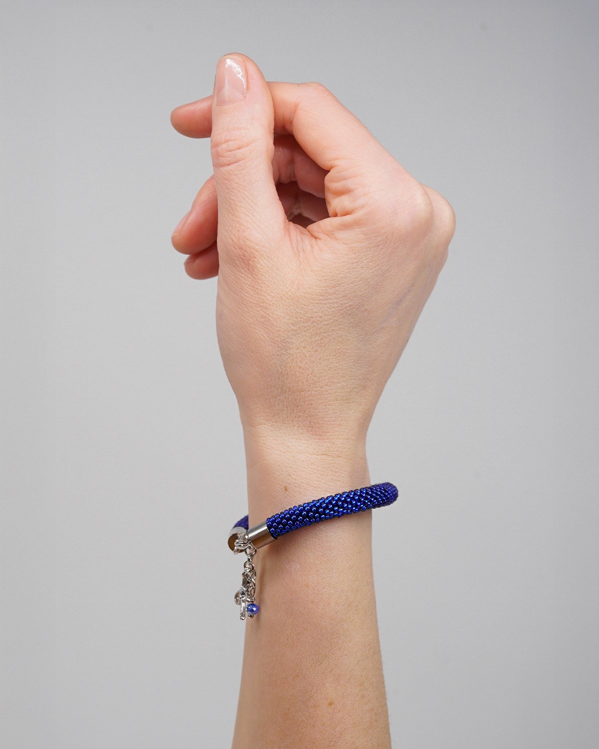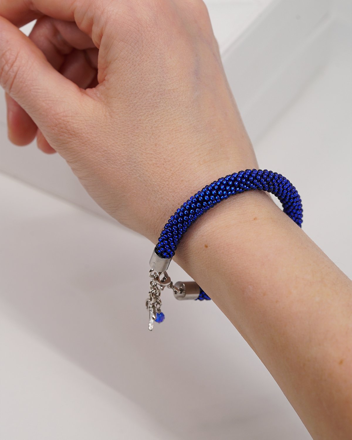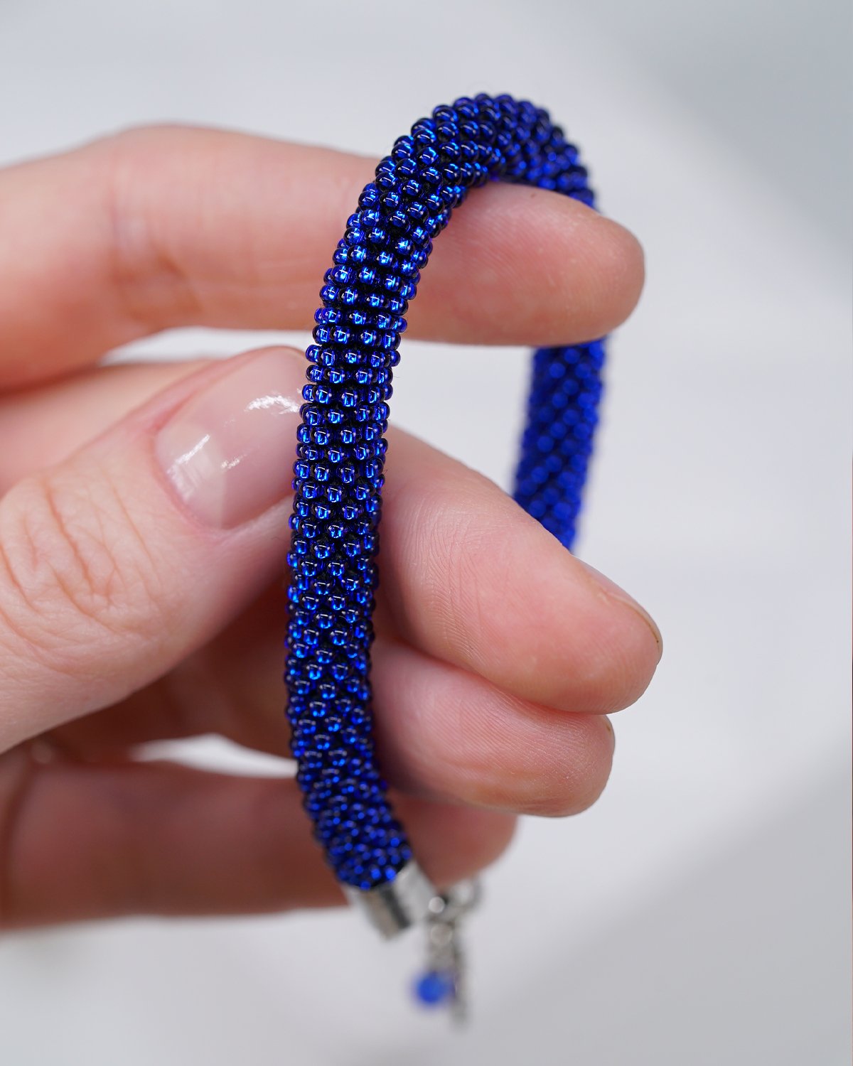 Elegant, refined, and full of charm — this sapphire blue bracelet is a timeless piece designed to elevate any look. Handcrafted using premium Japanese Toho seed beads, it features a rich, deep blue tone that beautifully catches the light with every movement.
